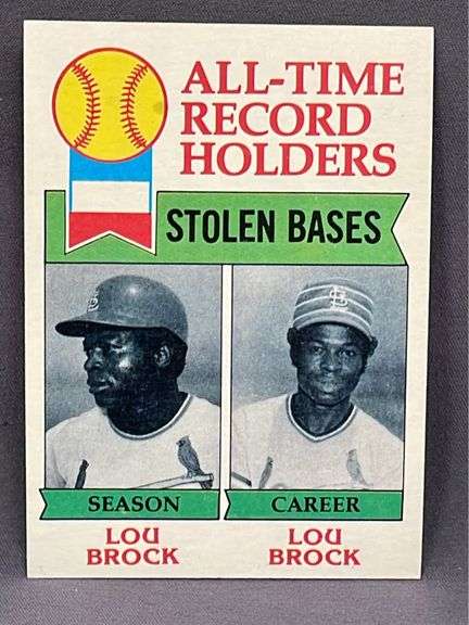 LOT 417 - 1979 Topps Baseball Card: All-Time Record Holders for Stolen Bases, Lou Brock