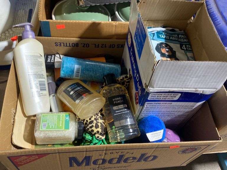 LOT 3592 - Training pads, toiletries, bottle, nails, vases