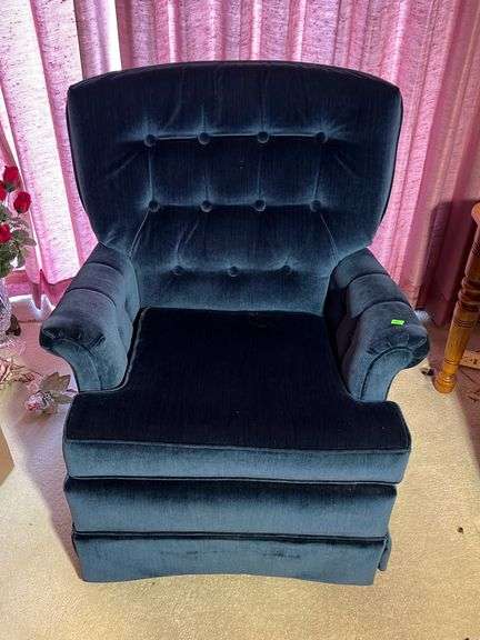 Blue Swivel Rocker with Tuffed Back 30”W Seat Ht. 17”