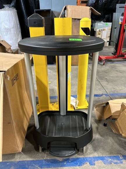 LOT 44A - Rubbermaid 6300 Step On Wheeled Linen Hamper Aluminum Black FG630000BLA
