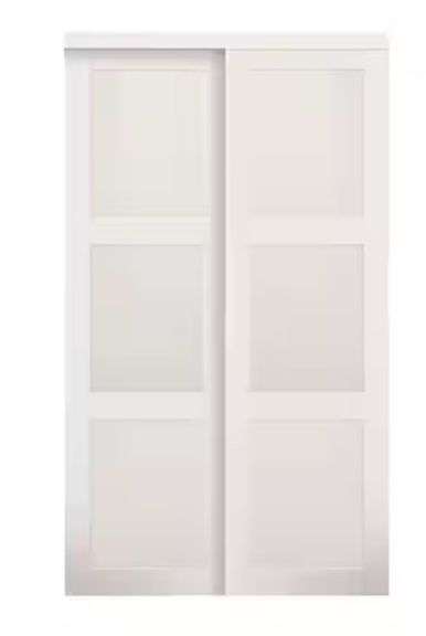 TRUporte 72 in. x 80 in. 2030 Series Off White 3-Lite Tempered Frosted Glass Composite Interior Sliding Door