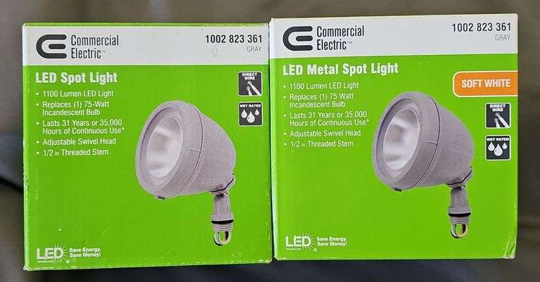 LOT 209 - 2 - Commercial electric LED metal spot lights - gray