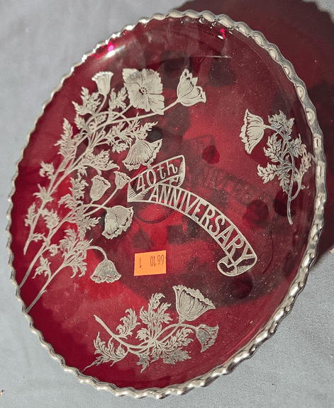LOT 6610 - Red glass anniversary footed dish 7.5”