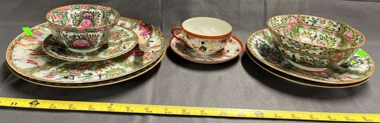 Asian Motif Theme Plates, Cups, Bowls and Spoon