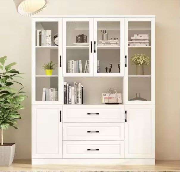 FUFU&GAGA White 63 in. W x 15.7 in. D x 78.7 in. H Wood Storage Cabinet with Adjustable Shelves, Glass Doors