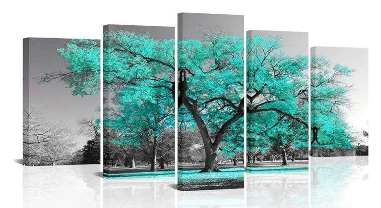 5 Pc. Visual Art Turquoise Tree Wall Art Decor 50"x24"