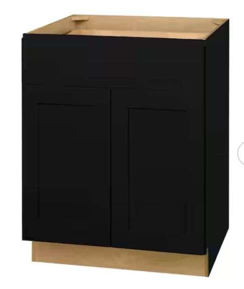 Hampton Bay Avondale 27 in. W x 24 in. D x 34.5 in. H Ready to Assemble Plywood Shaker Base Kitchen Cabinet in Raven Black