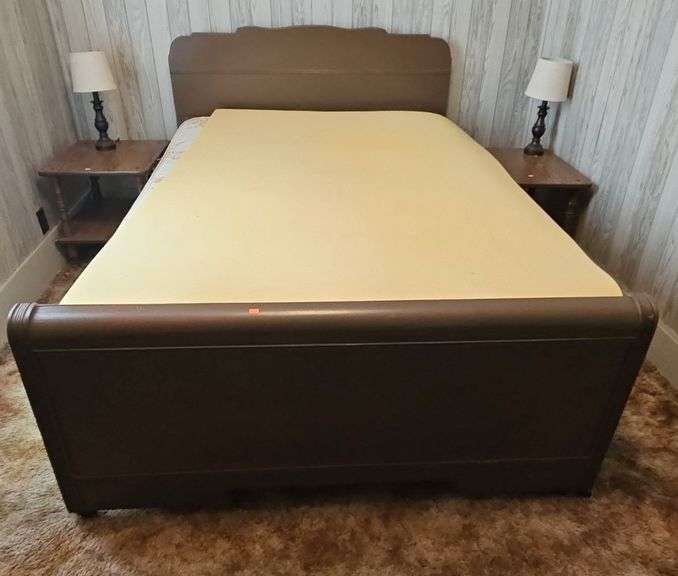 Full Size Bed with Painted Wood Frame and Box Spring (side tables not included)