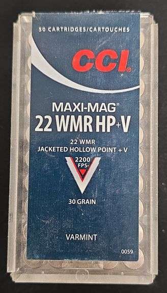 LOT 1075 - CCI Maxi-Mag .22 WMR 30 gr. Jacketed Hollow + V Point Ammunition - 50 Rounds