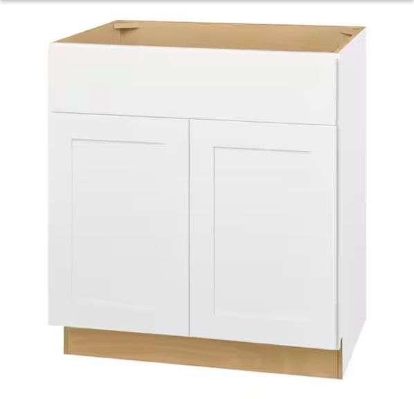 Hampton Bay Avondale 30 in. W x 21 in. D x 34.5 in. H Ready to Assemble Plywood Shaker Sink Base Bath Cabinet in Alpine White