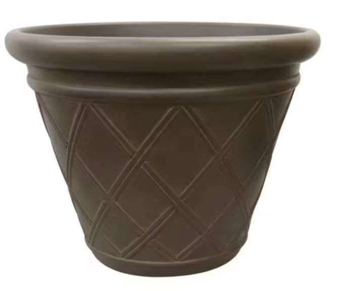 Vigoro 17.5 in. Lincoln Weave Large Brown High-Density Resin Planter (17.5 in. D x 13.3 in. H) With Drainage Hole