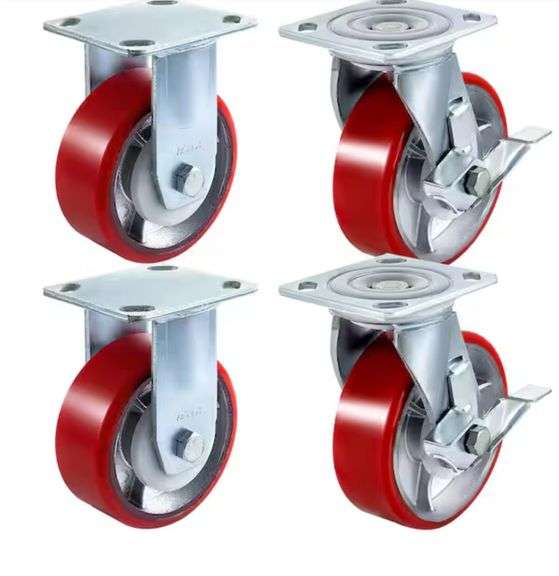 VEVOR Caster Wheels 4 Pack 6 x 2 in. 2 Rigid and 2 Swivel Casters with Side Brake Iron Core Plate 1000 lbs. Capacity Per Wheel