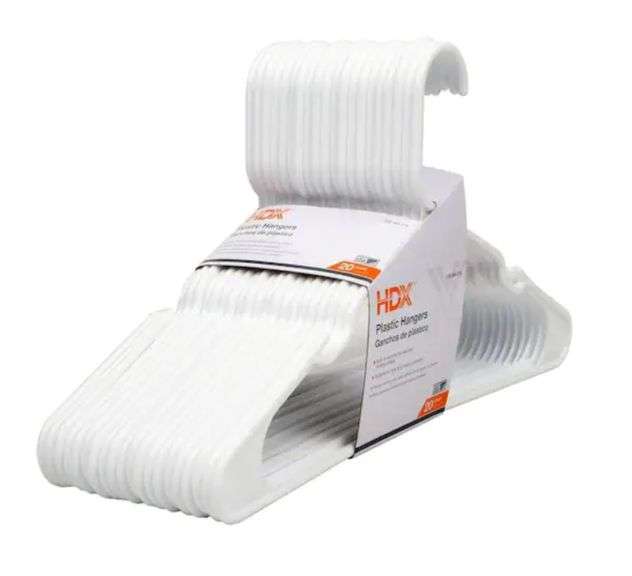 LOT 1502 - HDX White Plastic Hangers (20-Pack)