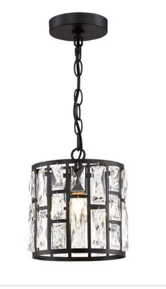 LOT 11019 - Home Decorators Collection Kristella 1-Light Black Crystal Pendant Light