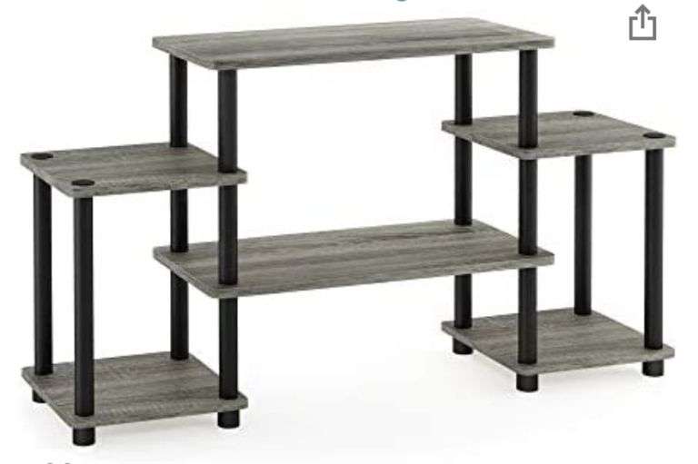 LOT 2020 - Furinno Turn-N-Tube No Tools Entertainment Center, Round Square Corner, French Oak Grey/Black