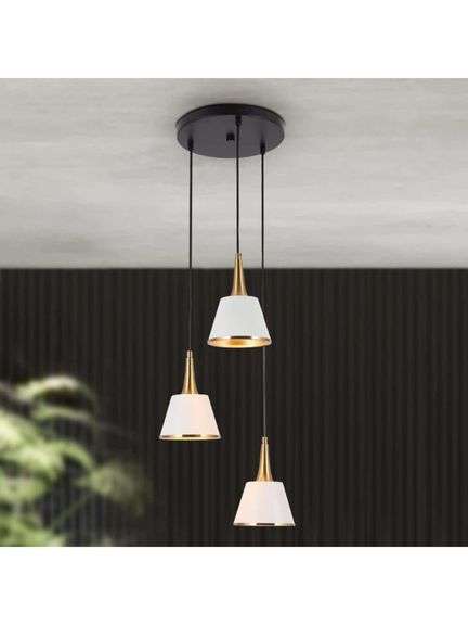 LOT 11691 - LNC - Modern 3-Light Black and White Chandelier Brass Island Ceiling Light with Bell Shades for Kitchen Island Dining Table