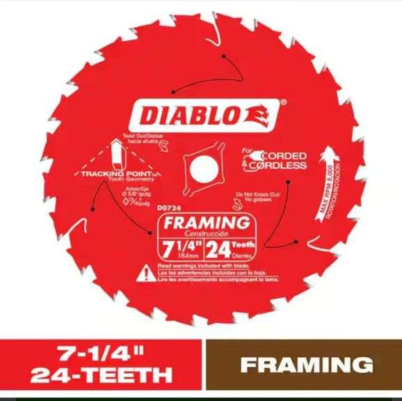 LOT 2039 - DIABLO 7-1/4in. x 24-Teeth Tracking Point Framing Saw Blade for Wood