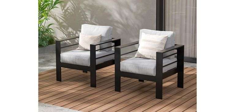 Wisteria Lane 2 Pieces Patio Furniture Aluminum Armchair, All-Weather Outdoor Single Sofa, Black Metal Chair with Light Grey Cushions