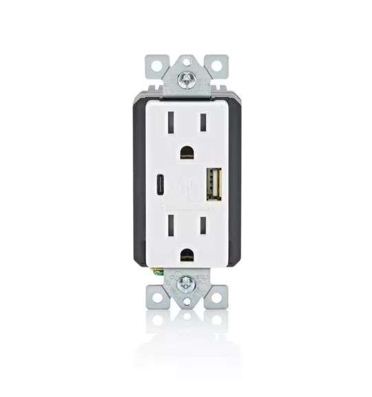 4-Leviton 15 Amp Tamper Resistant Type A/C 3.6 Amp 18-Watt USB Outlet (1-Pack)