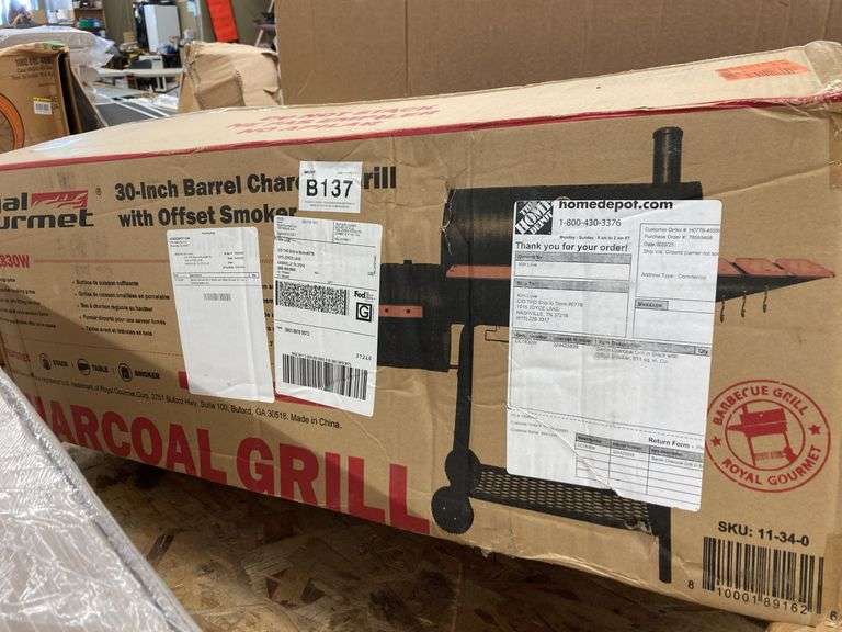 Royal Gourmet Barrel Charcoal Grill in Black with Offset Smoker, 811 sq. in. Cooking Space, Wood-Painted Side Table
