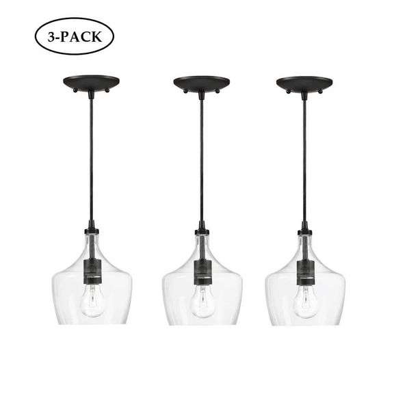 LOT 241738 - HUKORO - 1-Light Black Kitchen Island Pendant with Clear Glass (3-Pack)