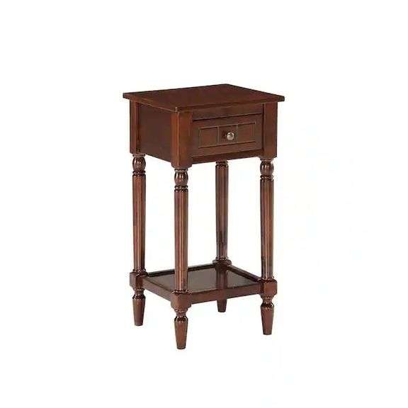 Convenience Concepts Khloe accent table in espresso finish, model R3-0217. Features 1 drawer with a knob handle, 4 cylindrical legs, and a lower shelf. 14" W x 14" D x 28" H