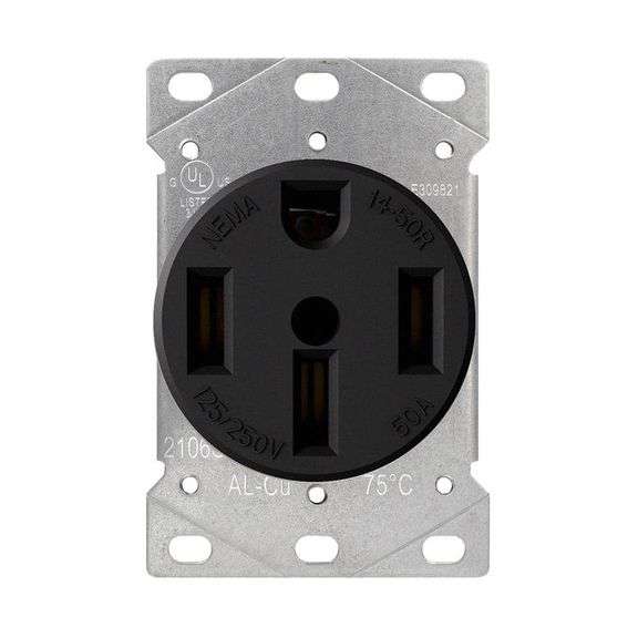 LOT 261217 - ELEGRP - 50 Amp 125/250V, NEMA 14-50R Flush Mount Power Outlet, Single Straight Blade Range and Dryer Outlet Grounding, Black