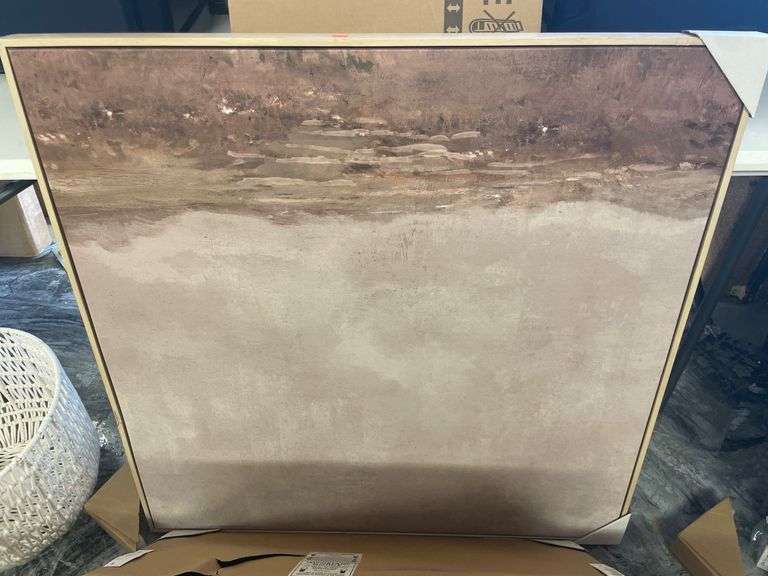LOT 95 - Abstract Neutral-Toned Wall Art in Slim Frame 36”x36”