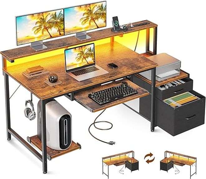 LOT 291043 - AODK - Computer Desk with Drawers and Keyboard Tray, 48