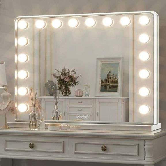 LOT 341037 - KEONJINN - 32 in. W x 24 in. H Large Hollywood Vanity Mirror Light, Makeup Dimmable Lighted Mirror for Table in Brush Nickel Frame