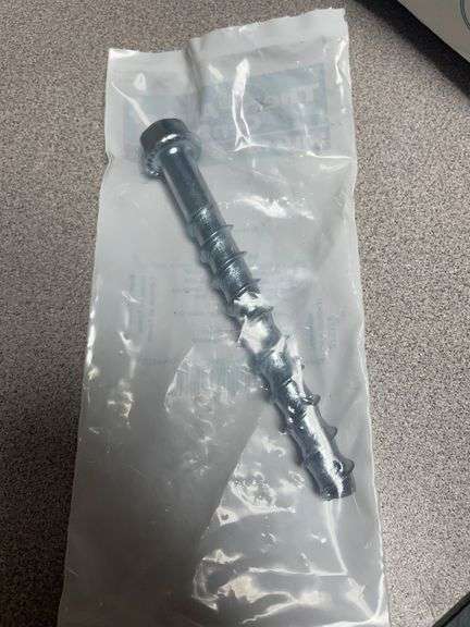 Hillman Screw-Bolt+ construction anchors made of zinc-plated steel. Dimensions are 3/8" diameter x 4" length.