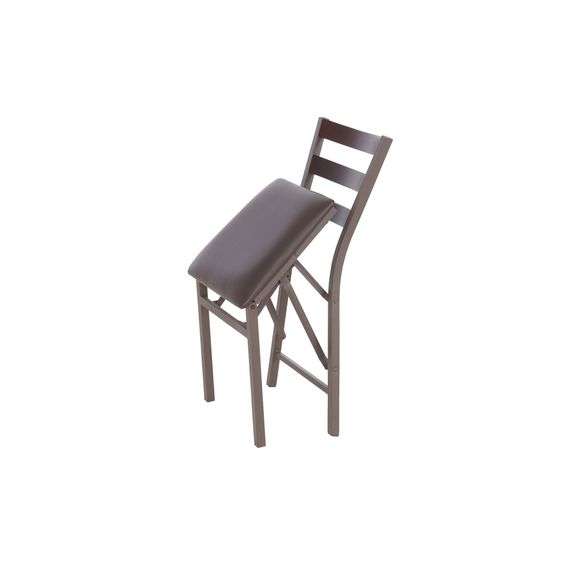 Ladder back folding chair with a brown metal frame. Measures 16.7 in W x 32.98 in H x 18.7 in D. Suitable for versatility.