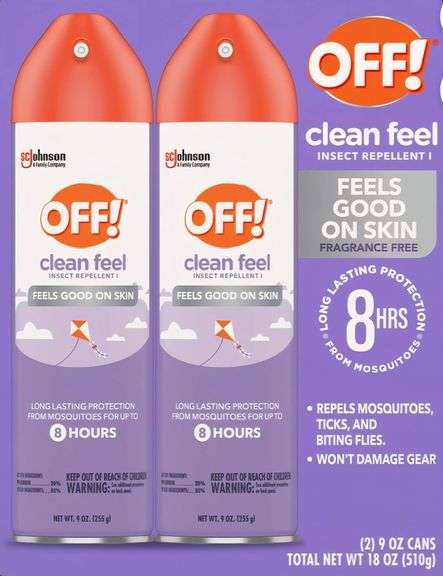 LOT 1052 - 2 pack OFF! Clean Feel Insect Repellent Spray Cans, 9 oz Each