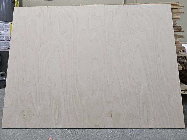 Rectangular plywood sheet with a smooth natural grain pattern. 48 1/2" × 34 7/8" × 1/2"