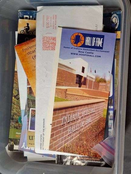 Travel brochures, visitor guides, and maps from various locations, Inc. West Virginia and Michigan. Includes materials from 2013 and diverse regions. Contents show wear from storage and use.