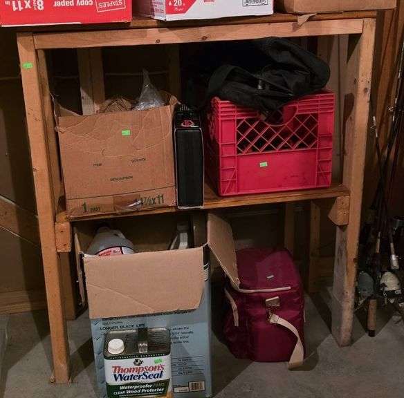 Storage shelving unit featuring 2 wooden tiers. Suitable for organizing various items. Dimensions: 36″ x 16.5″ x 40″.