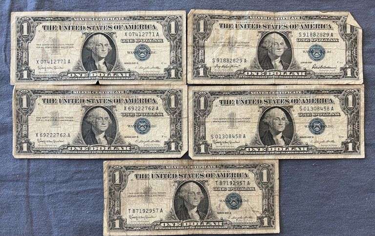 LOT 4164 - 5- Blue Seal Silver Certificates 1957-1957 B