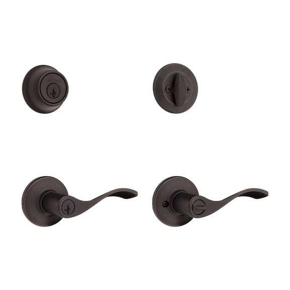 LOT 421770 - KWIKSET - Balboa Venetian Bronze Exterior Single-Cylinder Deadbolt and Keyed entry door handle Combo Pack ft. SmartKey Security