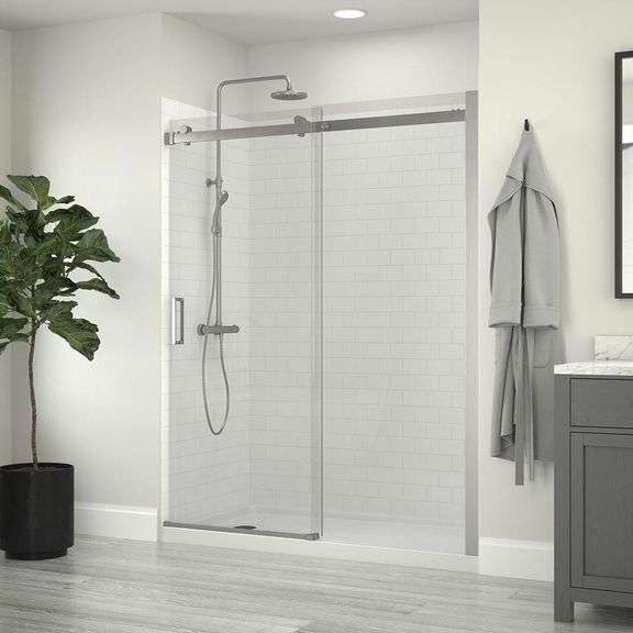 LOT 421442 - CRAFT + MAIN - JETCOAT 32 in. x 60 in. x 78 in. 5-Piece Easy-up Adhesive Alcove Shower Surround in White Subway - SEE PRODUCT DETAILS