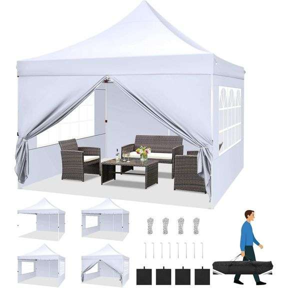 LOT 421013 - COBIZI - COBIZI 10x10 Pop-Up Canopy Tent with Sidewalls,Ez Waterproof Commercial Party Tent, UV 50+ Outdoor Instant Gazebo, White