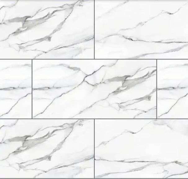 382 sq. ft. of Lifeproof Mountain Brook Marble waterproof vinyl flooring with a 22 MIL wear layer. Tile dimensions are 18.5 in. W x 37 in. L, covering 19.1 sq. ft. per case. Designed for high-traffic areas.