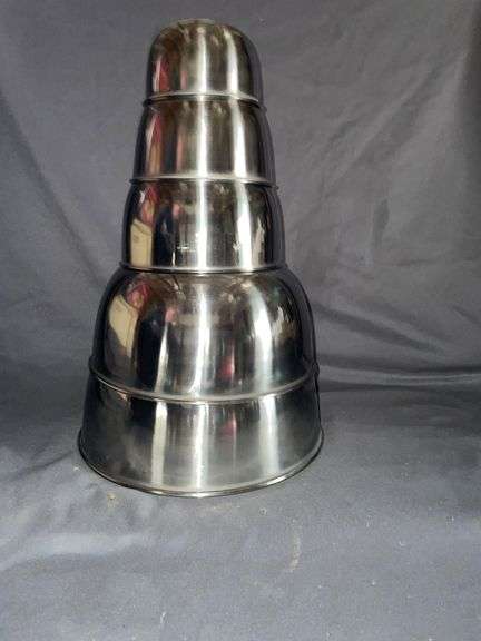 5-piece stainless steel mixing bowl set by Interpur, made in Korea. Sizes range from 0.5 qt to 4 qt as marked on the original box.