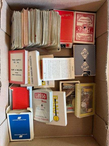 Playing cards in various designs and brands, including promotional decks, plus a Walt Disney World 'Celebrate the Future Hand in Hand' pin.