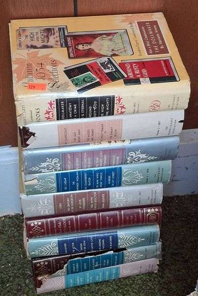 9 hardcover volumes of Reader’s Digest Condensed Books featuring various notable works of fiction. Includes distinctive decorative spines.