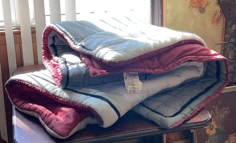 Sleeping bag manufactured by Sears Roebuck & Co., featuring polyester fiber batting, nylon liner, and outer materials. Approx. weight: 5 lbs.