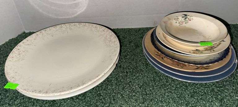 Includes Royal Ironstone China by Alfred Meakin (England), Tudor Rose, and Made in Japan plates. Features floral and patterned designs.