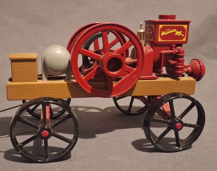 1:6 scale model engine cart featuring metal components and frame. Includes red engine elements, hand crank, and 4 black spoked wheels.