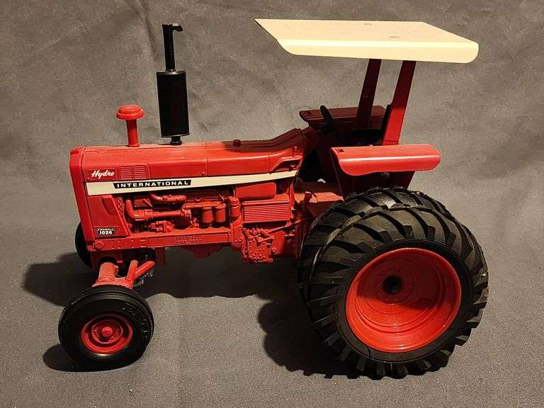 1/16 scale diecast International 1026 farm tractor with a canopy, produced for the 1987 Summer Farm Toy Show. Features red finish, realistic details, dual rear wheels, and an exhaust stack.