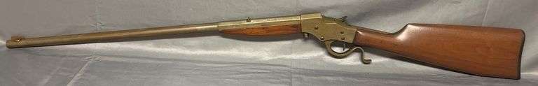 J. Stevens Arms & Tool Co. single-shot rifle chambered in .22 Long Rifle. Features a brass frame, octagonal barrel, and engraved markings. Lever-action mechanism with stamped serial number 507.