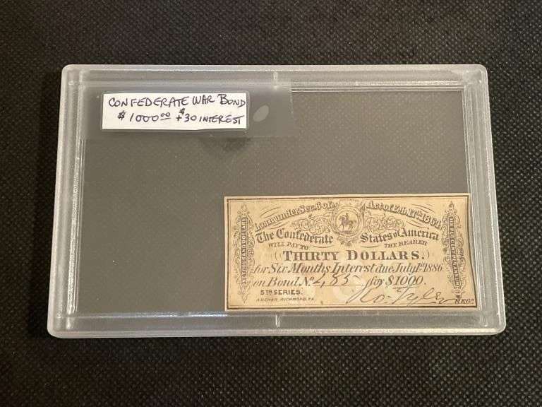 LOT 7 - Confederate War Bonde $1000 + $30 Interest